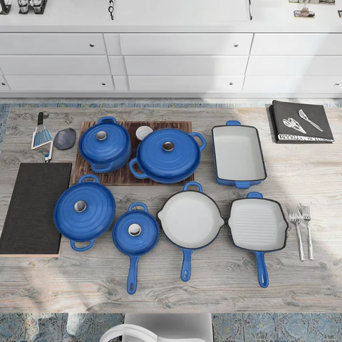7ピースコバルトブルーエナメル鋳鉄調理器具セットオーブン/Stovetop安全無毒金属ダッチオーブンポット耐久性鋳鉄